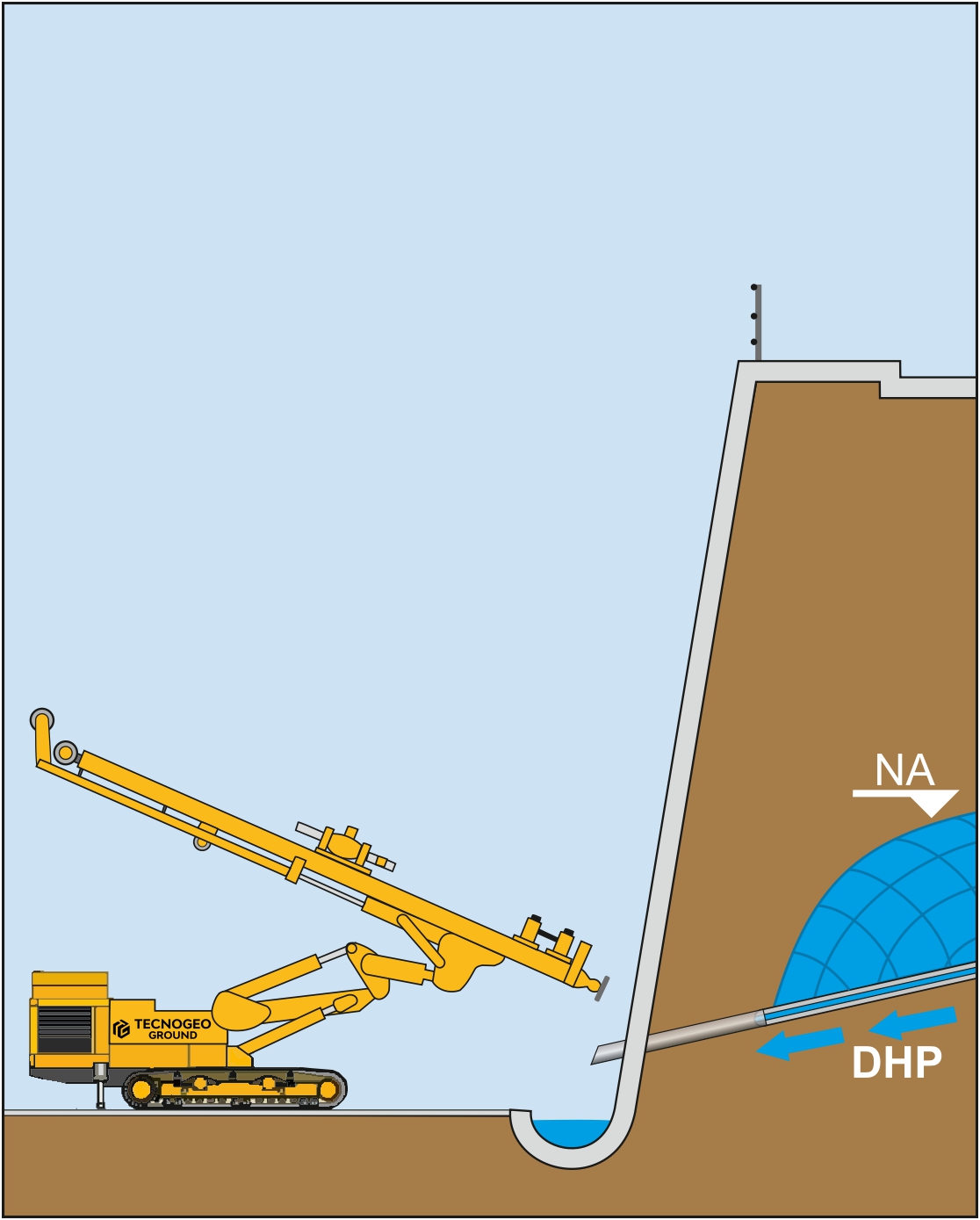 A presença de água no maciço pode causar instabilidades gerando aumento de pressões neutras acarretando em possível carreamento de solo, desmoronamentos e danos severos. Os DHP´s são utilizados em maciços cuja presença de água impossibilita ou dificulta as escavações.