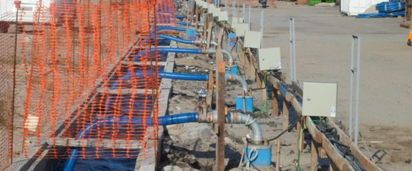 A execução de rebaixamento do lençol freático consiste na captação, condução e despejo das águas existentes no subsolo, permitindo a execução de serviços abaixo do nível do lençol freático.