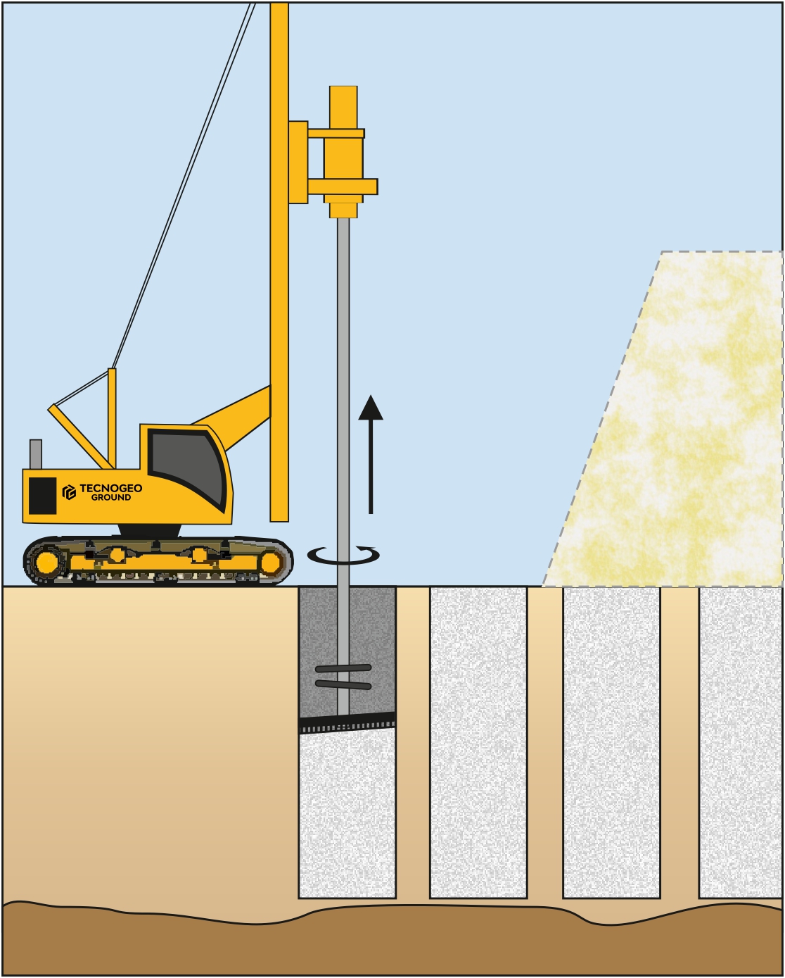 As colunas de solo-cimento, formadas a partir da mistura do solo natural com o cimento injetado, resultam em um compósito homogêneo com propriedades geomecânicas (resistência e deformação) melhores do que o solo original.